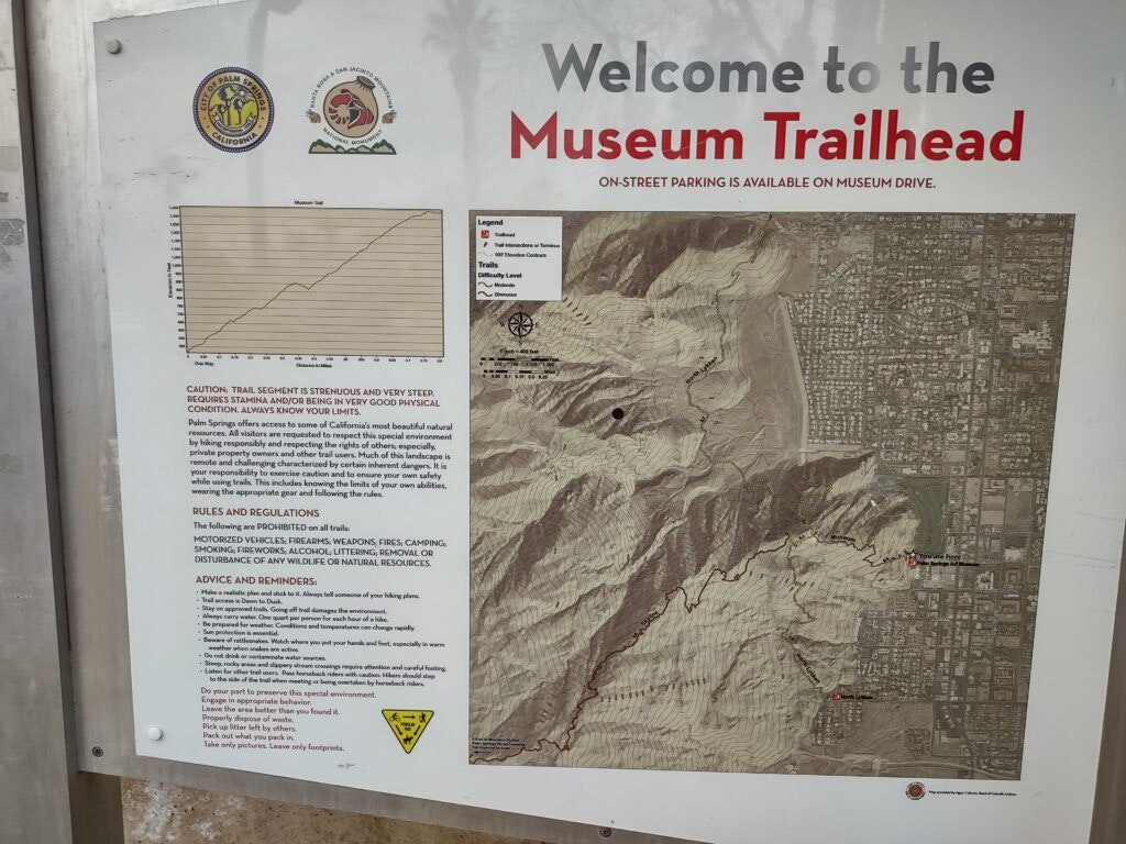The initial part of the trail, starting near the Palm Springs Art Museum at 520 feet elevation, includes the Museum and North Lykken Trails. Interestingly, after the first 0.8 miles, C2C becomes an informal path maintained by hikers and volunteers, emphasizing the community's dedication to this trail.