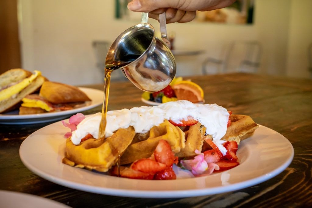 Who knows how that stuff happens, but during soccer season, just know that the place will be jam-packed. You should also know that Cafe Sintra is no secret. Every local knows about this place, and the tourists quickly catch on that this is the place to come for the best breakfasts and lunches in Sunriver. So really, no matter when you go, there’s sure to be a crowd. Thankfully, it’s light and airy inside and bigger than it looks from the outside. It has a real farmhouse style to it.
